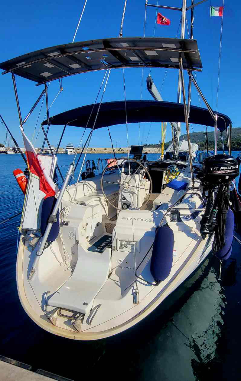 Frankie imbarca e salpa dal MARINA ARCIPELAGO TOSCANO di Piombino (LI).