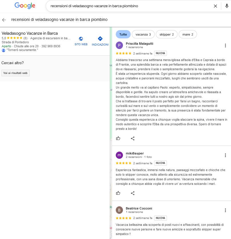 Recensioni pubblicate dal sito sailsquare.com (solo chi è stato a bordo può fare una recensione ricevendo un apposito link)