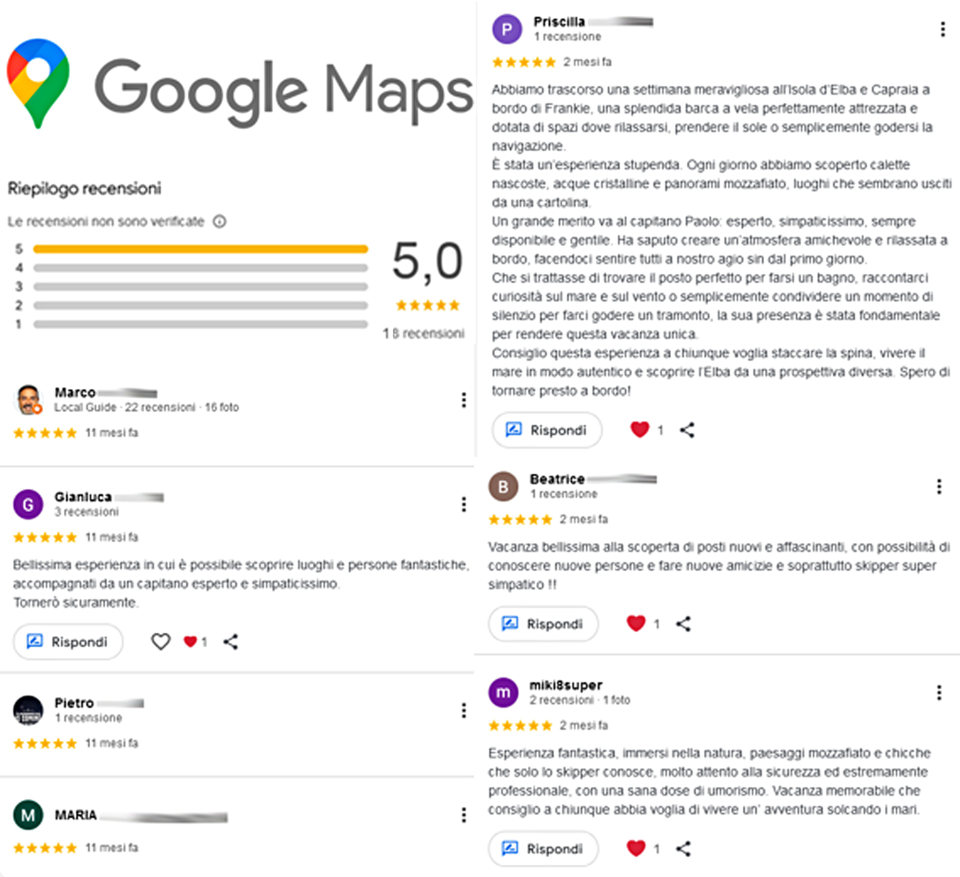 Recensioni pubblicate dal sito sailsquare.com (solo chi è stato a bordo può fare una recensione ricevendo un apposito link)